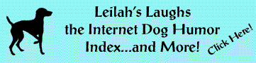 Thie humor is mostly G rated, with a little PG-13 humor here and there. If I have linked to your site, or used your material, and you would like me to correct something, credit it, or remove it, please notify me (Contact Us) and I'll take care of it ASAP. Most links have links to their home pages, please give them a look-see. But I cannot be held responsible for what others put on their sites if you go exploring. You are quite welcome to link directly to any pages on this site, you do NOT have to ask permission for that, that's what it's there for. This does not give anyone free rein to snag graphics or bandwidth without permission (as when someone puts my graphics directly on their own web site without uploading them to their own server first). I do have to pay for excessive bandwidth use and that's extremely rude to do to anyone. Please notice that this site has no sponsors, it's my personal site and I pay for it out of my own pocket. I have free graphics available at the Small Paws Rescue site. If you want to use a banner for a Leilah's
